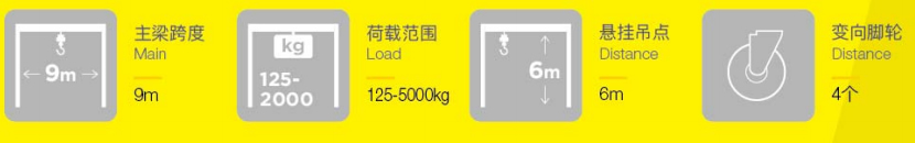 RST可移動(dòng)式門(mén)吊起重量125kg至5000kg;跨度達(dá)9m;梁下高度可達(dá)6m;并具有4個(gè)可變向定位腳輪、移動(dòng)輕松。